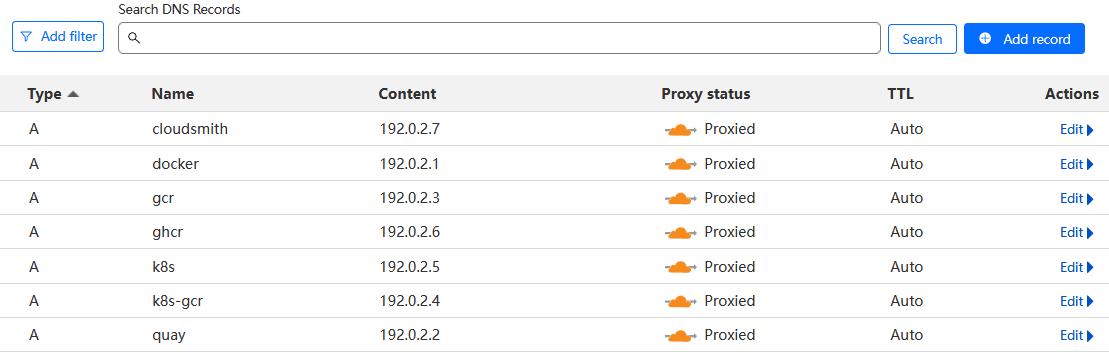 k8s 的不少开源业务镜像有自己的域名镜像仓库,导致 CF 的域名代理需要针对不同大类的 repos: tags 额外新增域名映射关系,真到用的时候,这个就很麻烦了。